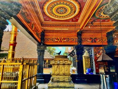 Der Tempel besitzt die größte Subrahmanya-Statue und den höchsten goldenen Fahnenmast Keralas, der Shaiva- und Vaishnava-Architekturelemente vereint.