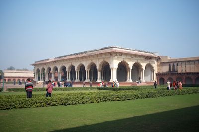 Shah Jahan errichtete diese Audienzhalle zwischen 1628 und 1635, um Bürger zu treffen und ihre Anliegen im Agra Fort Komplex zu behandeln.