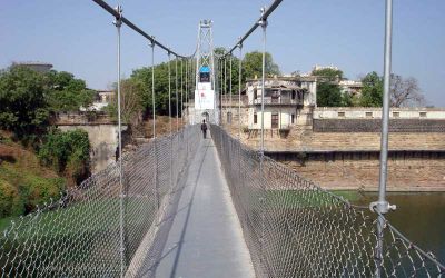 Die Hängebrücke wurde 1879 während der britischen Kolonialherrschaft eröffnet und verbindet verschiedene Bereiche von Morbi Taluka.