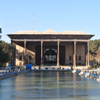 Schah Abbas II beauftragte 1647 den Bau dieses Palastes für den Empfang ausländischer Würdenträger und die Organisation safawidischer Zeremonien.