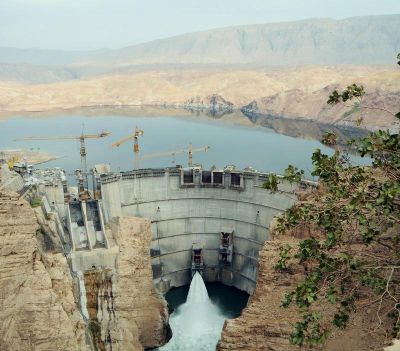 Der Staudamm veranschaulicht die iranische Infrastrukturentwicklung seit den 1950er Jahren durch hydraulische Großprojekte.