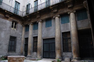 Der Palast bewahrt architektonische Elemente einschließlich des Eingangsportals und eines Innenhofs mit Säulen, die Palladios Konstruktionsmethoden zeigen.