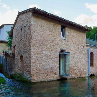 Rasiglia ist ein Bergdorf in Foligno, Italien, das für seine Wasserkanäle bekannt ist, die durch gepflasterte Gassen fließen. Natürliche Quellen speisen ein System aus steinernen Rinnen, das noch immer alte Mühlräder antreibt und Becken entlang der Wege füllt.