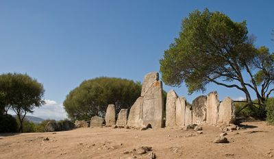 Li Lolghi ist das größte Gigantengrab Sardiniens mit vierzehn monolithischen Steinen und einem gebogenen Eingang von 5 Metern Höhe.