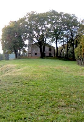 Das Eremo di San Gallo ist eine kleine Eremitage mit Kapelle und Wohnräumen auf einem Hügel auf etwa 363 Metern Höhe. Das einfache, kompakte Bauwerk liegt auf einem bewaldeten Bergkamm und bietet Blick auf die umliegende Landschaft.