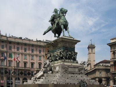 Das Denkmal steht im Zentrum der Piazza del Duomo und dient als Orientierungspunkt für Besucher, die Mailand erkunden.