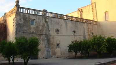 Das Monastero degli Olivetani ist ein romanisches Kloster in der Nähe von Lecce mit zwei rechteckigen Innenhöfen, deren Säulen aus lokalem Kalkstein gefertigt sind. Der zweite Hof enthält einen dekorativen Brunnen mit korinthischen Spiralsäulen.