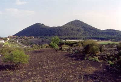 Monti Rossi sind eine vulkanische Formation in der Nähe von Nicolosi, die sich bis auf etwa 950 Meter erhebt und durch ihre dunkelroten bis schwarzen Gesteinsschichten stark auffällt. Die Hänge fallen steil ab und zeigen die typischen Merkmale von Vulkanschutt und erstarrter Lava aus früheren Eruptionen.