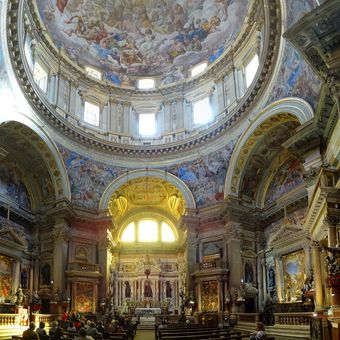 Die Königliche Kapelle des Schatzes von San Gennaro ist ein barockes Gotteshaus in der Kathedrale von Neapel mit einem Grundriss in Form eines griechischen Kreuzes und einer zentralen Kuppel. Der Innenraum zeigt silberverzierte Altäre und aufwendige Wandmalereien, die die religiöse Bedeutung des Ortes unterstreichen.