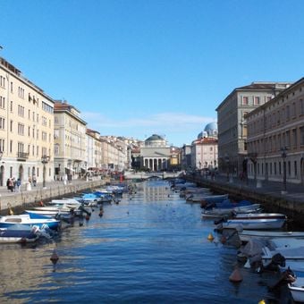 Der Kanal von Triest ist eine schmale Wasserstraße im Stadtzentrum, die vom Bahnhofsgebiet bis zur Piazza Unità d'Italia reicht. Er wird von alten Palästen, Cafés und mehreren Brücken gesäumt, darunter die bekannte rote Brücke aus dem 18. Jahrhundert und eine moderne Fußgängerbrücke mit Stahlkonstruktion.