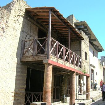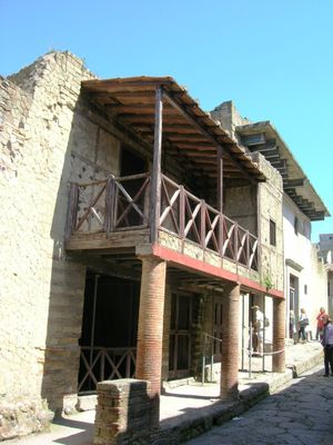Das Gebäude befindet sich in der Insula III der archäologischen Stätte von Herculaneum und zeigt Bauweisen mit holzgefüllten Lehmziegeln.