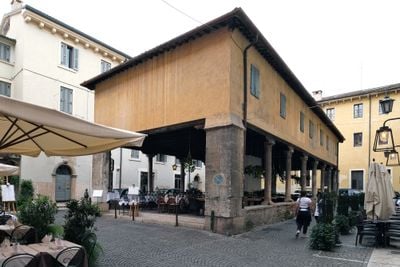 Im 13. Jahrhundert unter der Herrschaft von Mastino II della Scala wurde diese Loggia zum Zentrum des Wollhandels in Verona.