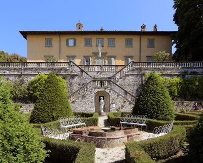 Das Anwesen enthält eine umgebaute Limonaia, ein traditionelles Gewächshaus für Zitrusbäume, die in der Region Lucca gebräuchlich war. Neun Hektar Parkland mit alten Eichen und Zedern wurden im romantischen Stil angelegt und zeigen historische Gartenmoden.