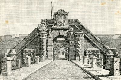 Das Tor wurde 1673 unter der Leitung von Claude Lamoral, Fürst von Ligne, während der spanischen Herrschaft erbaut und nach dem Erdbeben von 1693 repariert und erweitert.