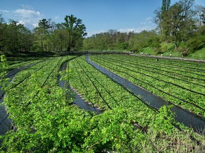 Die Wasabi-Felder werden ausschließlich mit Quellwasser bewässert, das eine konstante Temperatur hat und so die empfindlichen Pflanzen das ganze Jahr über gedeihen lässt. Die Wassermenge, die täglich aus den Bergen kommt, würde mehrere olympische Schwimmbecken füllen.