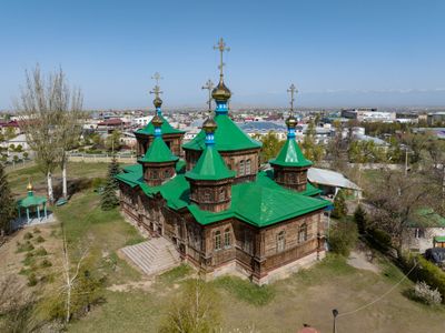 Heilige Dreifaltigkeitskirche, Ostkirchliches Gebäude in Karakol, Kirgisistan