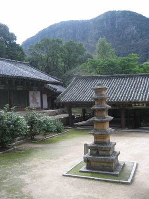 Der Tempel wurde 898 gegründet und beherbergt einige der ältesten Holzgebäude Nordkoreas. Die Ungjin-Halle wurde 1327 wiederaufgebaut und die Kukrak-Halle folgte 1374 mit neuer Architektur.