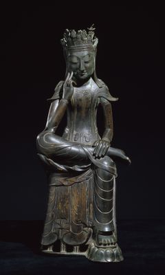 Goldbronzener Bodhisattva in nachdenklicher Haltung