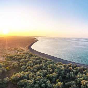 Der Name Alakol bedeutet bunter See und bezieht sich auf die wechselnden Farbtöne des Wassers bei unterschiedlichem Licht. Vogelbeobachter aus verschiedenen Ländern reisen hierher um die seltenen Möwenarten während der Brutzeit zu sehen.