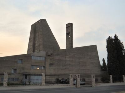 Church of the Holy Heart of Jesus, Brutalistische katholische Kirche in Konik, Podgorica, Montenegro