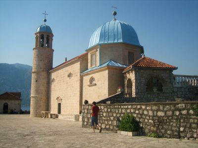 Unsere liebe Frau vom Felsen, Kirchengebäude auf einer kleinen Insel in der Bucht von Kotor, Montenegro
