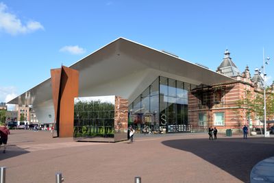 Das Stedelijk Museum Amsterdam ist ein Kunstmuseum in Amsterdam, das sich auf moderne und zeitgenössische Kunst sowie Design spezialisiert hat und etwa 90.000 Objekte beherbergt. Seine Ausstellungsräume verteilen sich auf ein historisches Gebäude aus dem 19. Jahrhundert und einen markanten modernen Anbau mit weißer Fassade, der lokal als Badewanne bezeichnet wird.