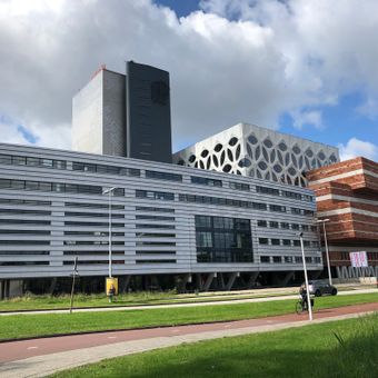 Twee poortgebouwen van het uitgebreide academische ziekenhuiscomplex, waarvan na sloop slechts enkele delen resteren