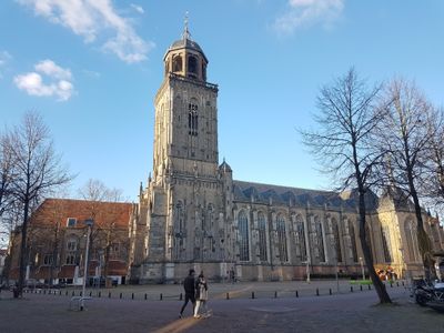 Die Lebuinuskerk verfügt über einen 62,5 Meter hohen Turm mit einer achteckigen Laternenkuppel, die 1613 von Architekt Hendrick de Keyser entworfen wurde.