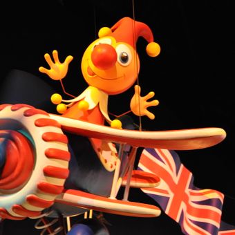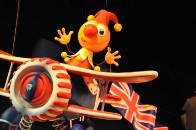 Die Attraktion präsentiert globale Festlichkeiten und Feierlichkeiten, geführt von den Figuren Jokie dem Narren und Jet dem lila Vogel.
