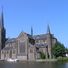 Die Petrus en Pauluskerk aus roten Ziegeln verfügt über einen 65 Meter hohen Turm, Rundbogenfenster und einen achteckigen Turmhelm.