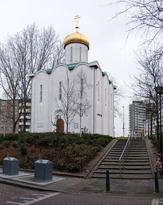 Der Bau dieser russisch-orthodoxen Kirche erfolgte zwischen 2002 und 2004, wodurch ein neues religiöses Zentrum in Rotterdam entstand.