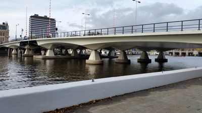 Die Konstruktion enthält zwei Motoren unterhalb des Amstel-Wasserspiegels, die die Brückenabschnitte für das Wasserschifffahrtsmanagement betreiben.