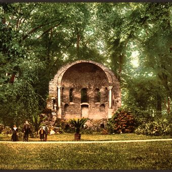 Die Barbarossa-Ruine besteht aus einer Tuffstein-Apsis mit architektonischen Elementen aus römischer und karolingischer Bauzeit in verschiedenen Stilen.