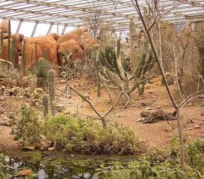 Der Bereich zeigt Pflanzen, die sich an extreme Trockenheit angepasst haben, und macht die Überlebensstrategien dieser Arten deutlich. Besucher können sehen, wie verschiedene Kakteen und sukkulente Pflanzen mit wenig Wasser auskommen.