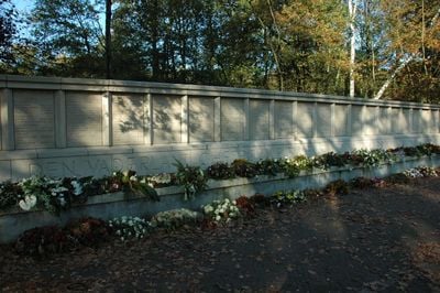 Das Denkmal zeigt Steinplatten mit den Namen der an diesem Ort hingerichteten Widerstandsmitglieder.