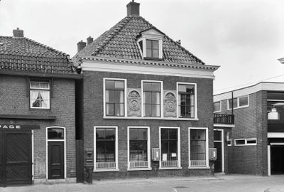 Eenvoudig pand met stervormig bovenlicht boven de deur onder zadeldak tegen puntgevel met vlechtingen en daklijsten