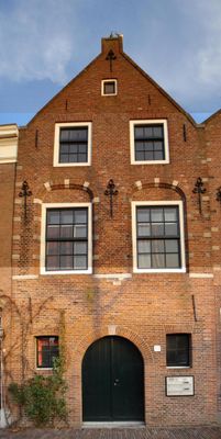 Pand met klokgevel. In de verdieping vensters met zesruitsschuiframen