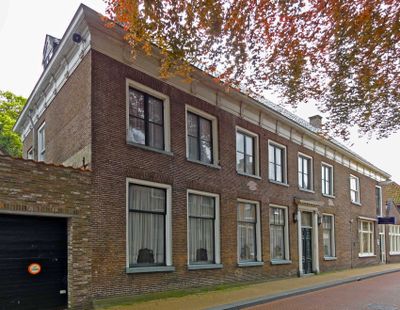 Groot sober rechthoekig pand met kroonlijst en voordeur met pilasteromlijsting, building in Steenwijkerland, Netherlands