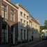 Pand met voordeur in pilasteromlijsting in gepleisterde gevel met rechte kroonlijst, building in Zwolle, Netherlands