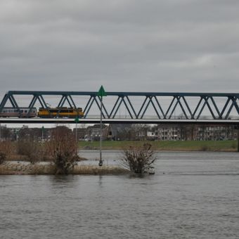 Die metallene Eisenbahnbrücke erstreckt sich über 500 Meter über den IJssel-Fluss mit einem zentralen Abschnitt von 95.7 Metern Länge.