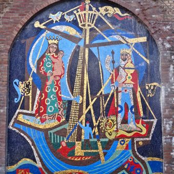 Mutter Gottes als Beschützer der Seeleute, Mosaik im öffentlichen Raum in Nijmegen (Niederlande)