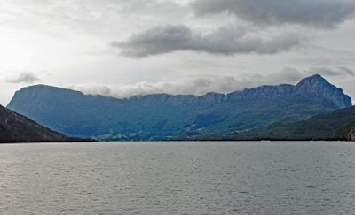Der Lifjorden erstreckt sich durch die Region Sogn Og Fjordane mit tiefen Gewässern und steilen Klippen der norwegischen Küstenformationen.