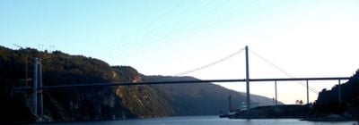 Die Fedafjorden-Brücke erstreckt sich über 574 Meter über den Fjord, mit einer Hauptspannweite von 335 Metern und einer Durchfahrtshöhe von 50 Metern.
