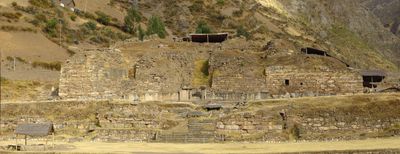 Chavin de Huantar ist eine zeremonielle Stätte im peruanischen Andenhochland auf 3180 Metern Höhe, nahe der Flussgabelung zwischen Huachecsa und Mosna. Die Anlage umfasst mehrere Steinbauten, offene Höfe und ein Netz von inneren Gängen, die unter den Plattformen verlaufen.
