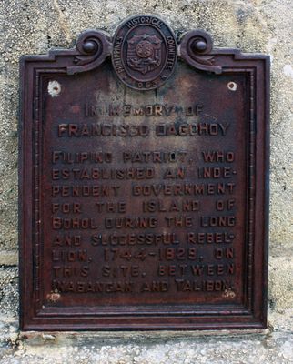 In Memory of Francisco Dagohoy historical marker, NHCP historical marker for Francisco Dagohoy
