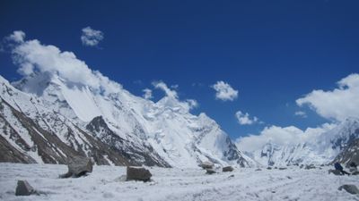 Der Vignegletscher erstreckt sich über 10 Kilometer durch die Karakorum-Kette, verbindet sich mit dem Baltoro-Gletscher und fließt von der Südseite des Chogolisa.