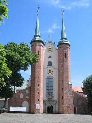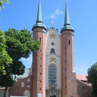 Der Dom zu Oliva erstreckt sich über 107 Meter mit zwei schlanken Türmen von 46 Metern Höhe und weist eine dreischiffige Basilika mit Querschiff auf.
