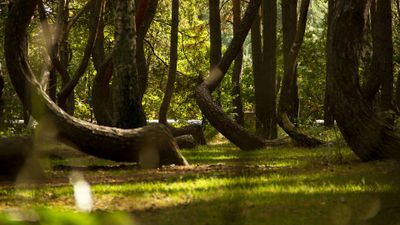 Dieser Wald beherbergt 400 Kiefern, die von ihrer Basis an stark nach Norden gebogen sind und dabei gleichförmige C-Formen bilden. Dieses unerklärliche botanische Phänomen wird seit Jahrzehnten in internationalen wissenschaftlichen Studien erforscht.