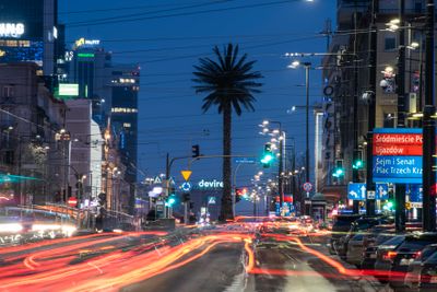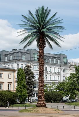 Warschauer Dattelpalme, Kunstinstallation am Charles-de-Gaulle-Kreisverkehr, Warschau, Polen.