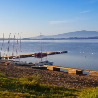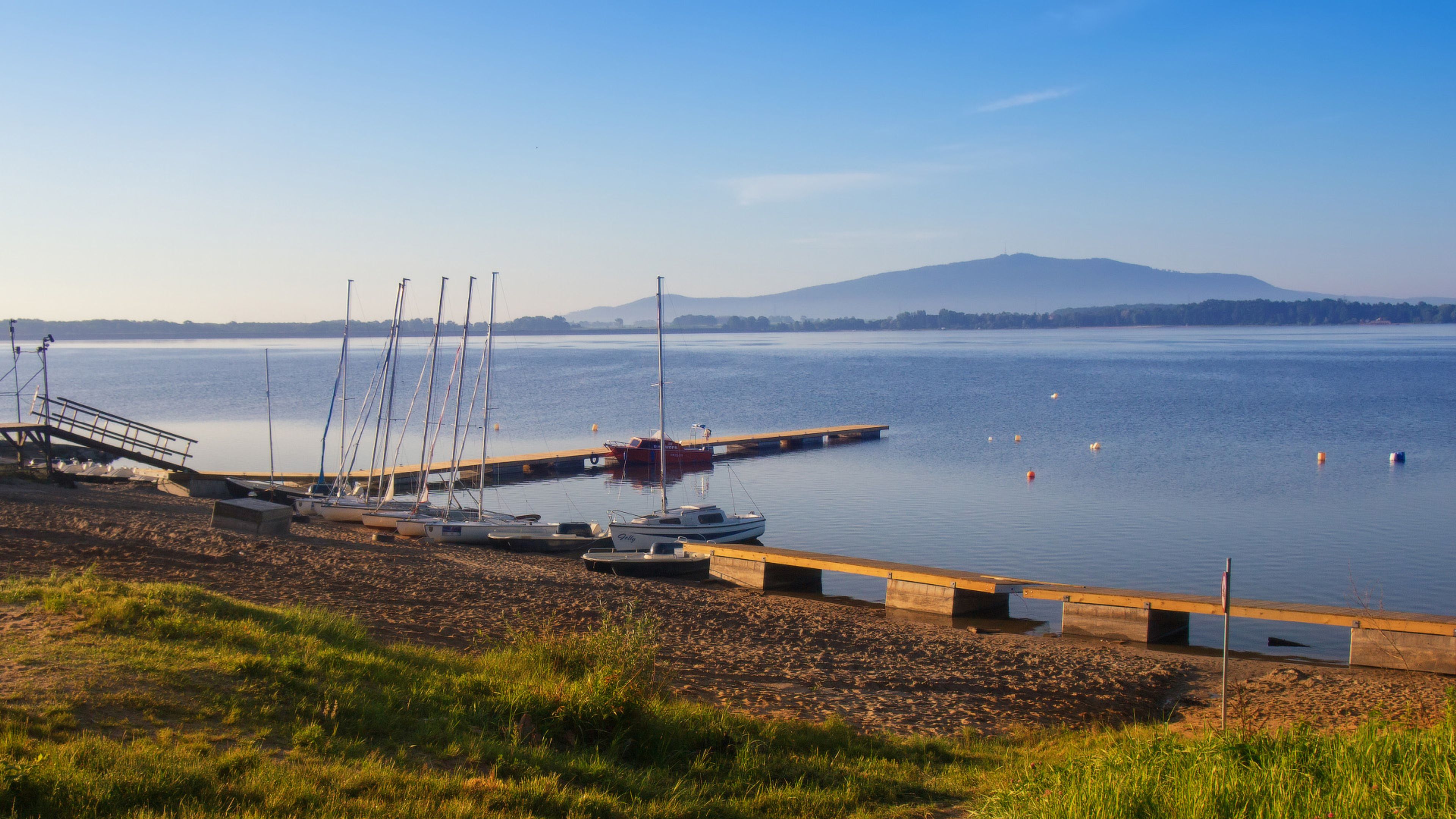 Der Mettkauer Stausee im Park erstreckt sich über 9,2 Quadratkilometer und dient als Erholungsgebiet und Wasserregulierungssystem.